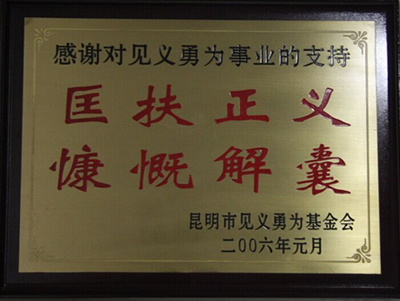 2006年昆明市見義勇為基金會頒發(fā)“匡扶正義 慷慨解囊”獎(jiǎng)牌