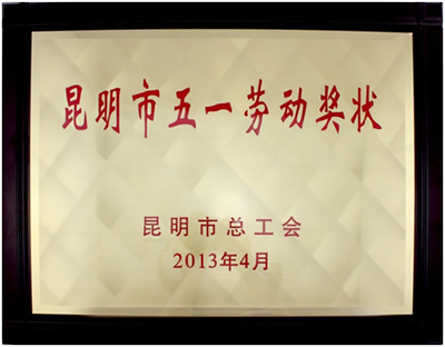 ![]() 2013年4月昆百大家電榮獲“昆明市五一勞動(dòng)獎(jiǎng)狀” |